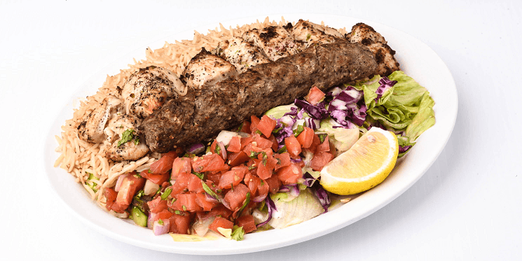 Combination of 1 skewer of Chicken Breast and 1 Skewer of Kofta Kabob